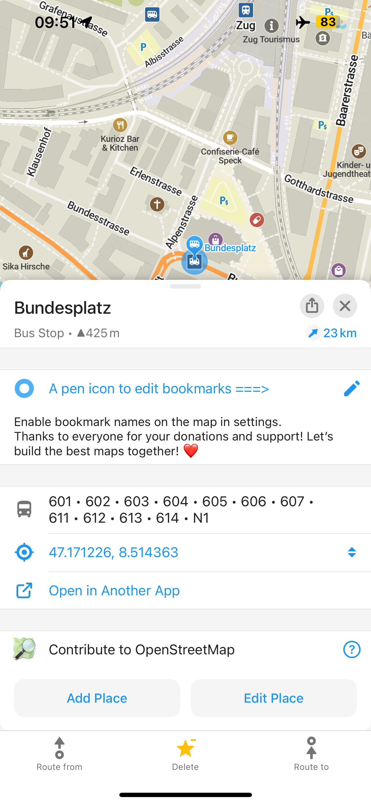 Nonostante molte sfide, siamo tornati in carreggiata e abbiamo rilasciato 13 versioni dell'app quest'anno con molti miglioramenti. Sono state introdotte diverse funzionalità notevoli, tra cui percorsi escursionistici e ciclabili globali da OpenStreetMap e il primo passo verso la navigazione con i trasporti pubblici visualizzando i numeri degli autobus alle fermate. Il lavoro in corso sull'SDK Android (che integra l'API esistente), il motore di rendering e altri componenti principali ci consentirà di introdurre nuove funzionalità nel 2026.